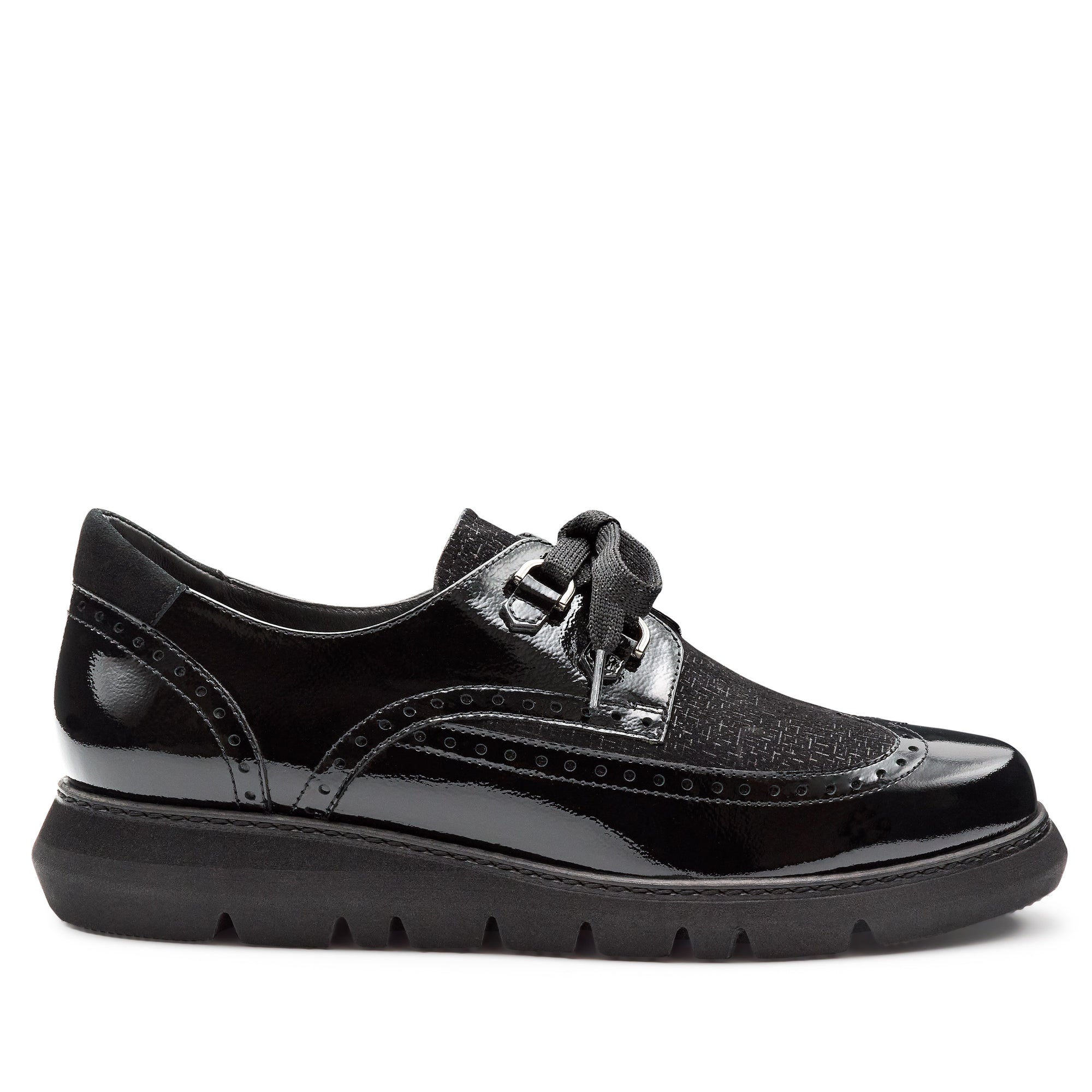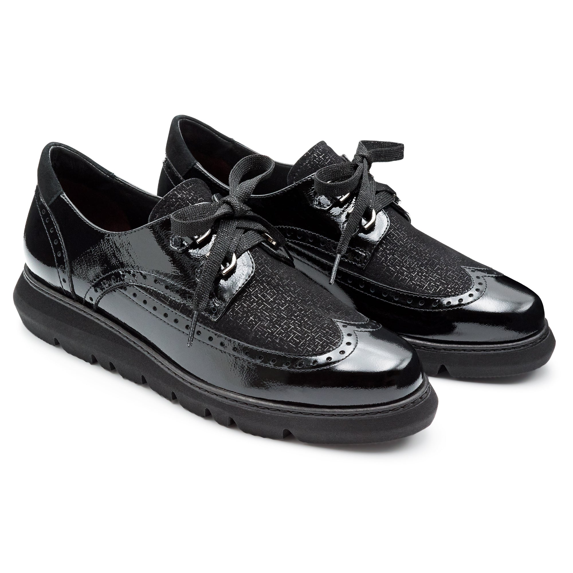 Zapatos derby de charol y ante con suela confort para dama