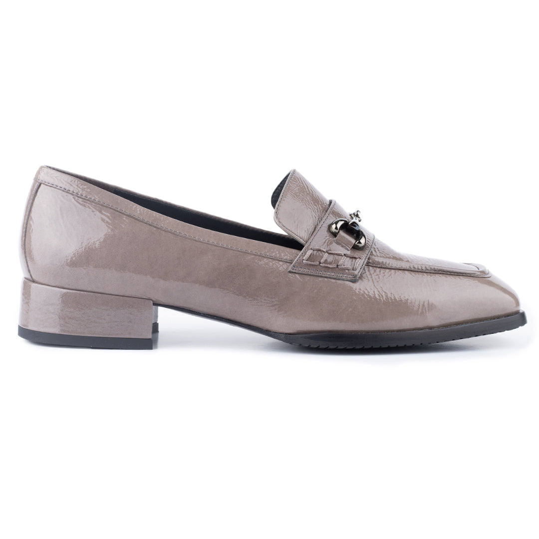 Mocasines de charol con herraje metálico y suela confort para dama