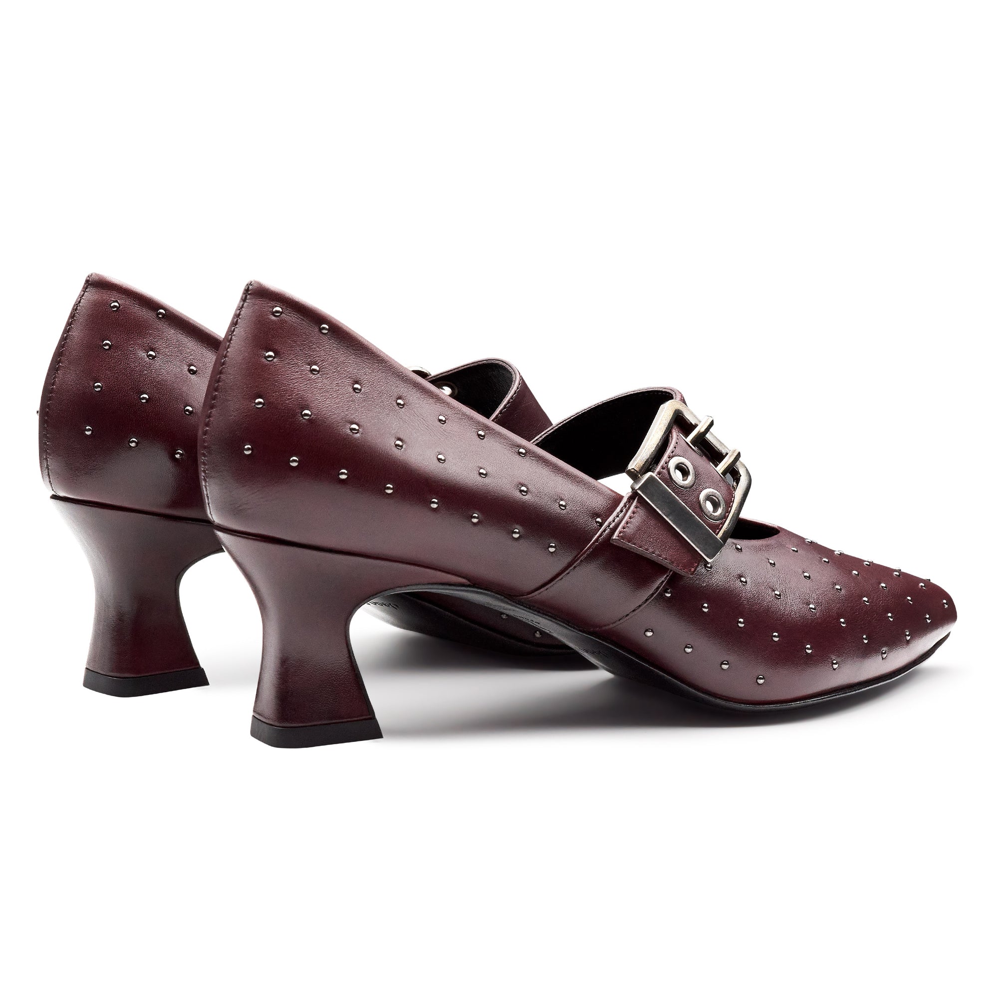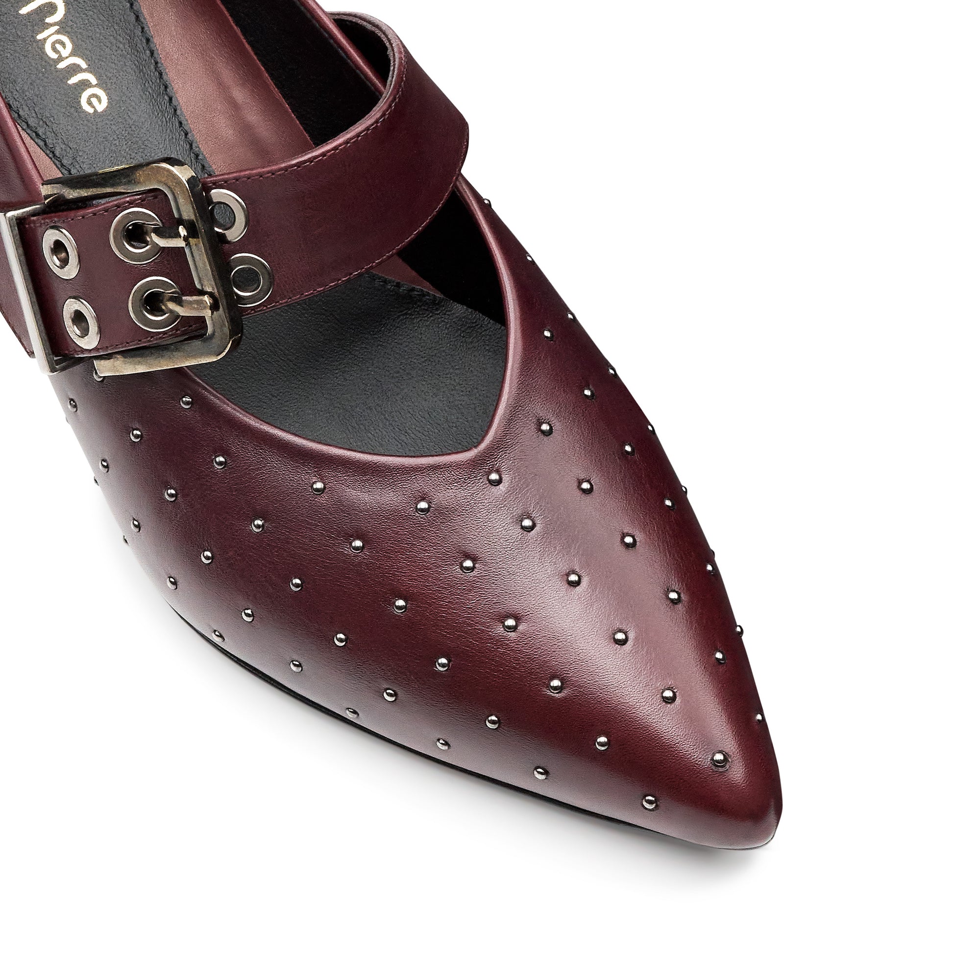Zapatillas de piel con aplicaciones en puntos metálicos vino