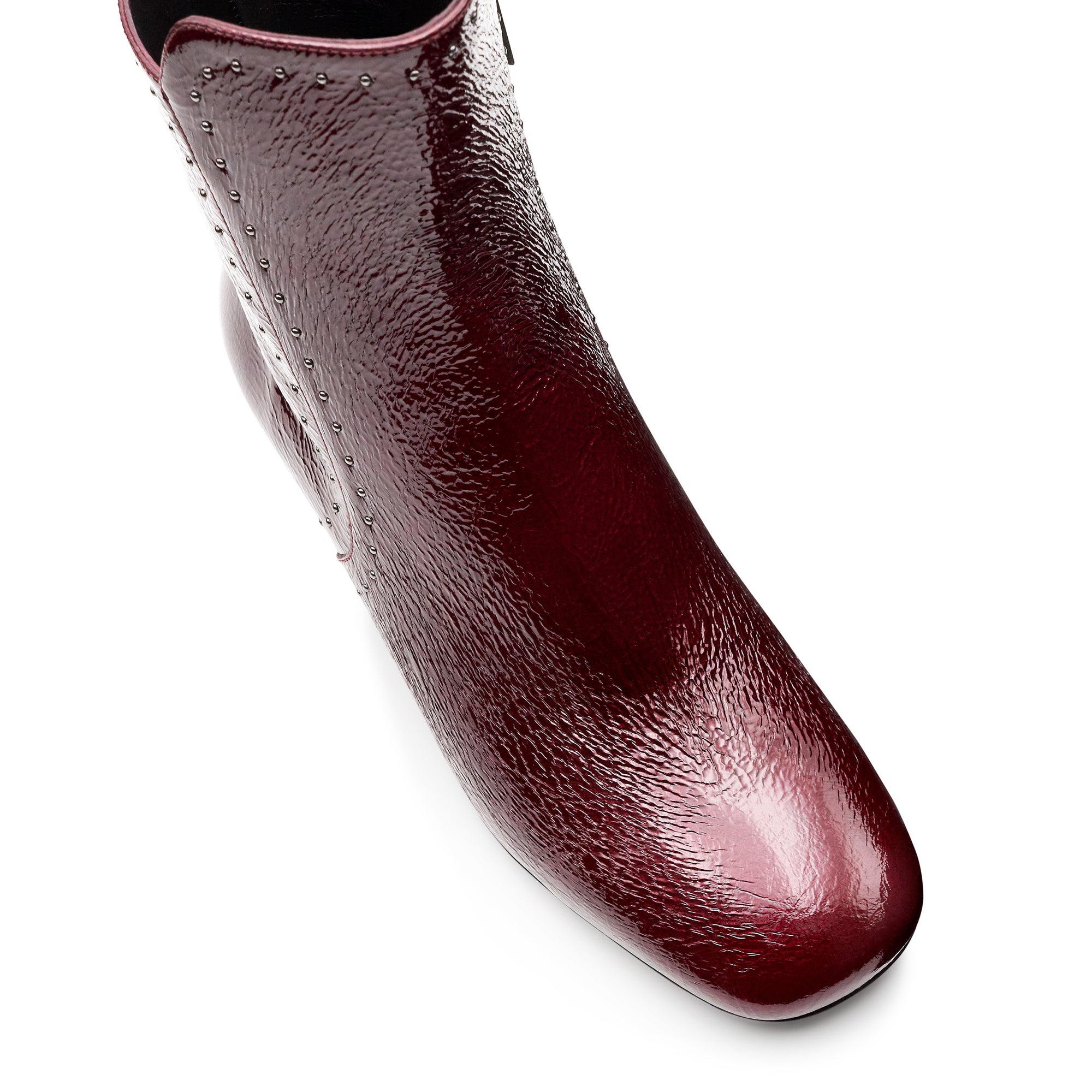 Botines de charol con aplicaciones decorativas metálicas para dama