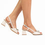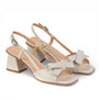 Delicadeza y estilo en un solo diseño. Estas sandalias slingback resaltan por su original moño decorativo, un detalle femenino que aporta un toque romántico a cualquier look. Su tacón ancho y diseño abierto son ideales para largas jornadas, ofreciendo comodidad sin sacrificar la elegancia. Una pieza versátil que se adapta tanto a eventos casuales como formales.